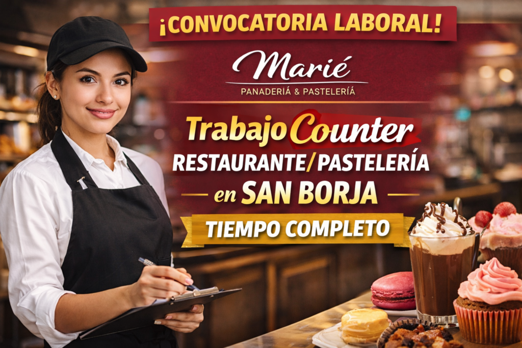 Si tienes experiencia en atención al cliente, pasión por la repostería fina y habilidades en preparación de bebidas frías, esta es tu oportunidad para integrarte a una empresa reconocida del sector panadería & pastelería en Lima. La empresa Marié ha lanzado una convocatoria para el puesto de Counter Atención Restaurante/Pastelería en el distrito de San Borja, bajo modalidad presencial y contrato de temporada.